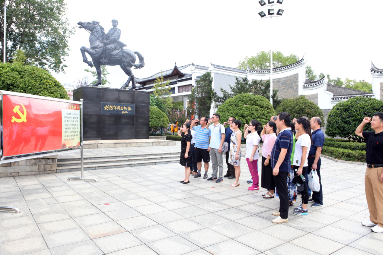 党员们先后参观了平江起义纪念馆内的“举义平江城”、“奔赴井冈山”、“转战湘鄂赣”和“红色廉政文化展”等展厅,认真聆听讲解员讲述革命先烈的英雄事迹,仔细观看历史资料和一件件实物展品,详细地了解了平江起义的背景和过程。在彭德怀铜像广场,党员同志们面对党旗,重温入党誓词,将党员的使命和初心铭记于心。随后,大家怀着无比崇敬的心情参观平江起义旧址,回顾了党的红色革命历史,进行爱国主义和革命传统教育。