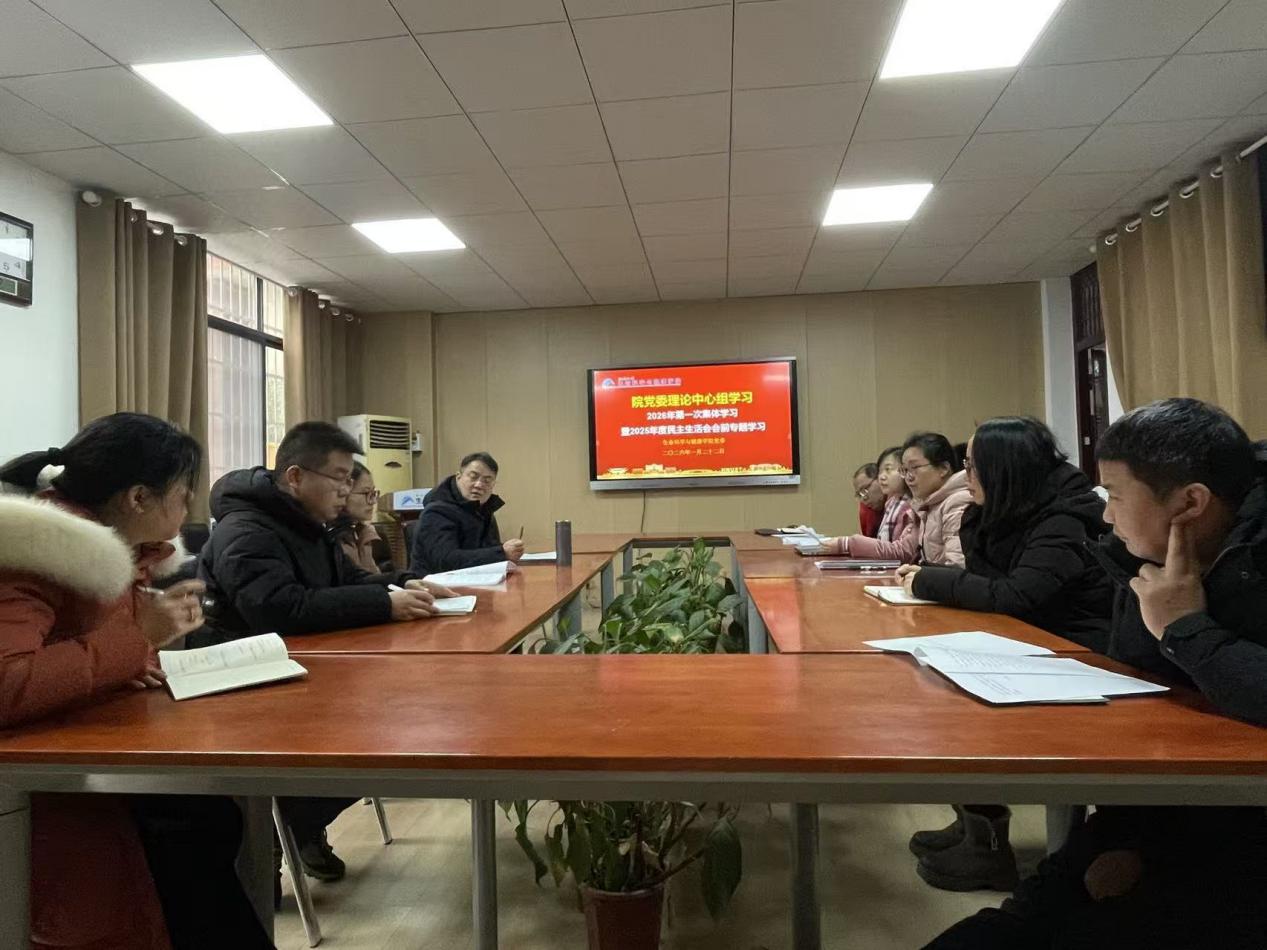 2026年1月22日上午,足球直播吧 党委理论学习中心组举行2026 年第 1 次集体学习暨 2025 年度民主生活会会前专题学习。院党委书记龙赢主持会议,院党委委员、院领导班子成员、三办主任、教工党支部书记以及组织员参加学习。