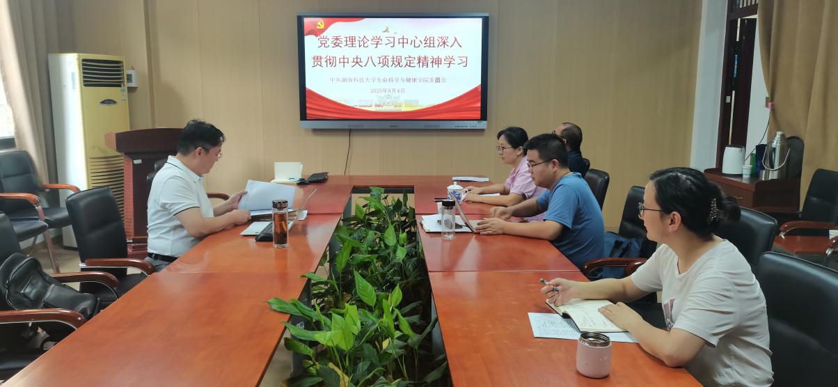 8月4日上午,院党委理论学习中心组在生物楼110会议室举行集体学习,院党委书记龙赢主持学习,足球直播吧 党委委员、领导班子成员参加。