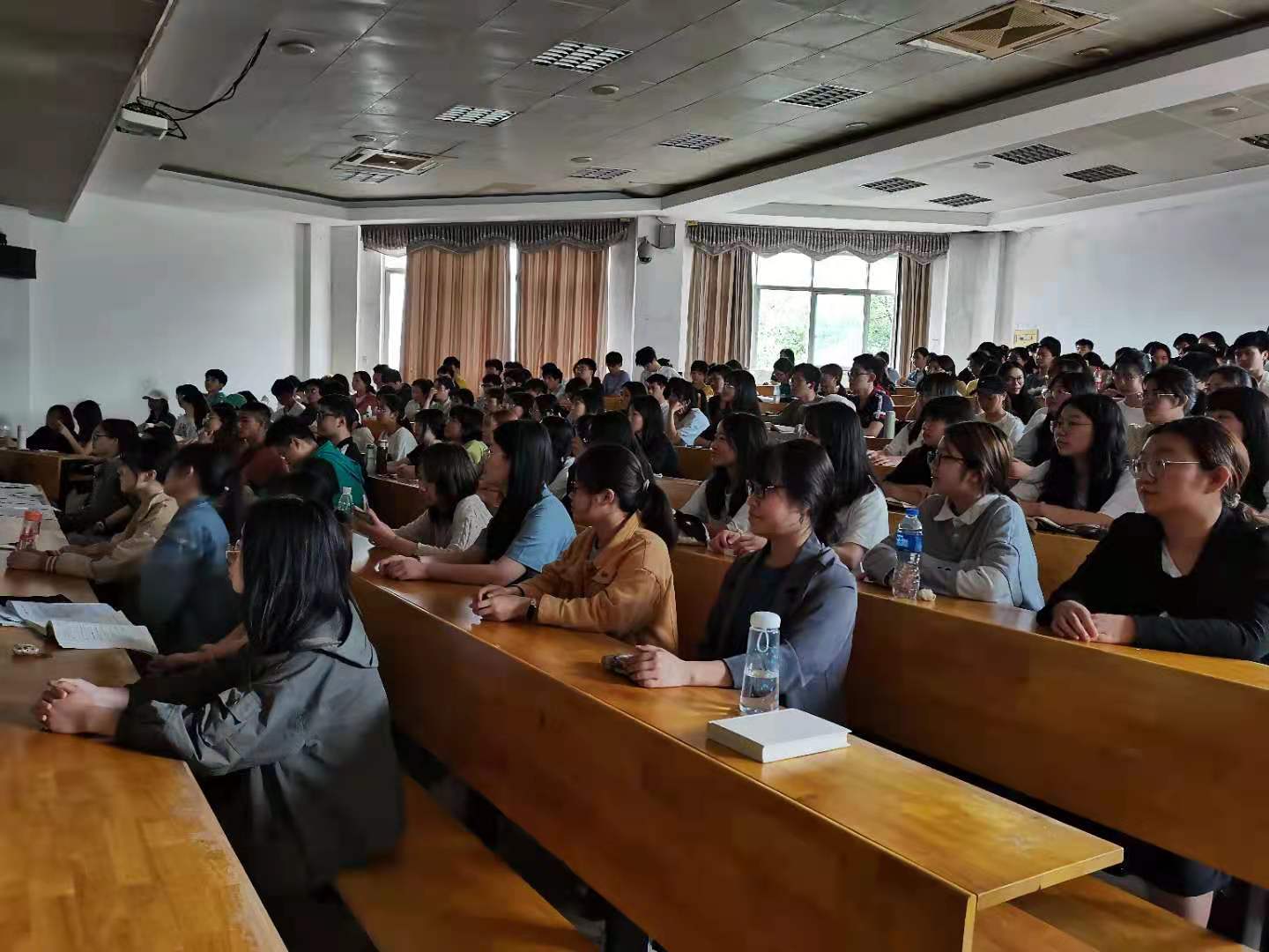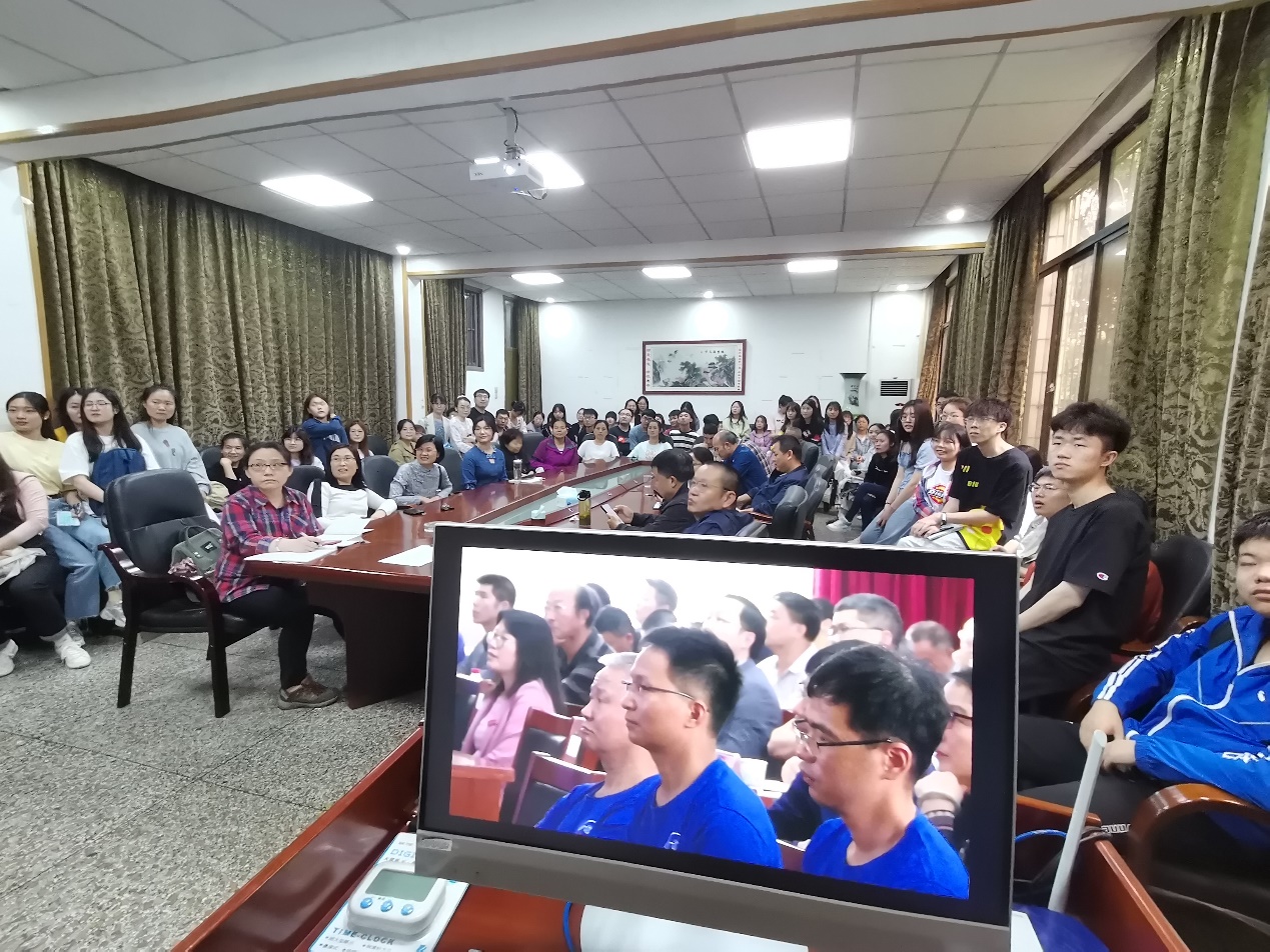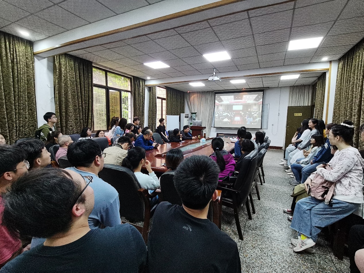 5月25日下午,为贯彻落实党代会精神,推动学校高质量发展,足球直播吧 按照学校安排,组织师生在足球直播吧 105会议室和十教东附楼202教室通过网络直播收看校党委书记唐亚阳关于第三次党代会精神的宣讲。
