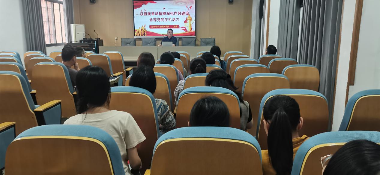 6 月 3 日下午,360直播足球直播 党委书记龙赢同志在生科楼 105 室,以 “以自我革命精神深化作风建设,永葆党的生机活力” 为题,为足球直播吧 党委班子成员及全体党员教师讲授了一堂意义深远的专题党课。此次党课紧密围绕党的作风建设,结合新时代全面从严治党的要求,深入剖析了作风建设的重要性与紧迫性。