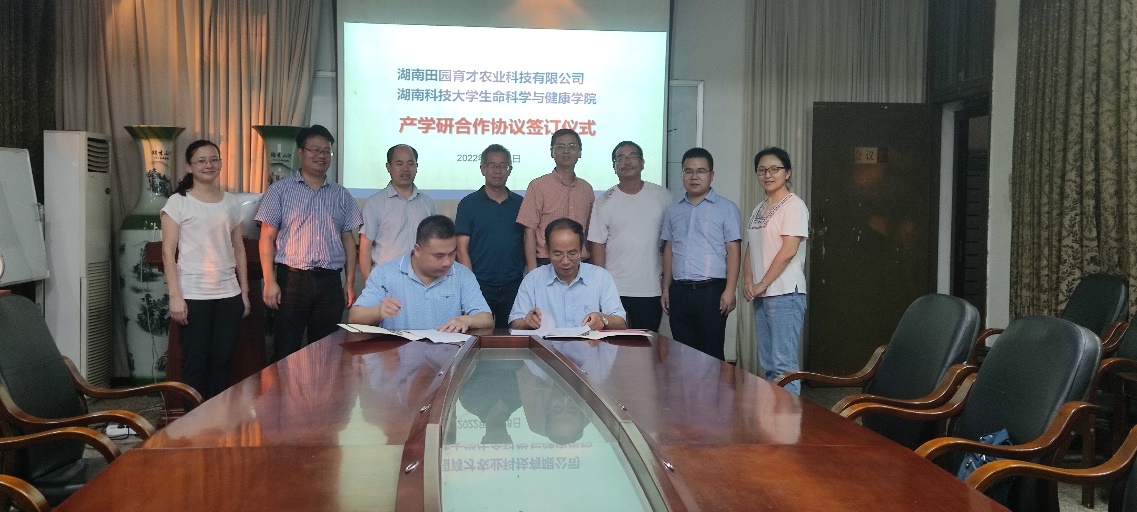 会议尾声,双方代表签订产学研合作协议,并明确进一步发挥足球直播吧 科研优势及湖南田园育才农业科技有限公司资源优势,促进校企产学研合作,达到双赢效果。