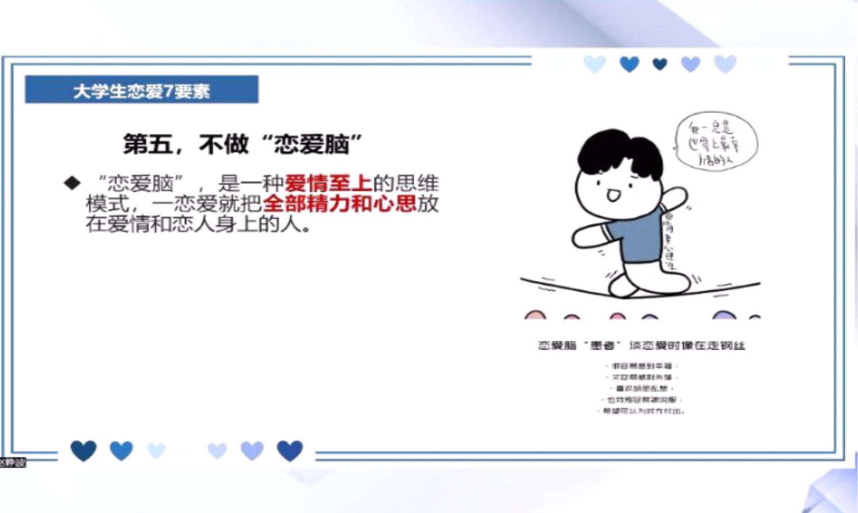 讲座中,赵静波将人际关系分为了以下四种:我们与自己的关系、我们与父母的关系、亲密关系、我们与他人的关系,并围绕这四个部分展开了此次专题讲座。讲座中,赵静波教授结合案例对四个部分进行了详细阐释与分析,并根据每种关系的特点向同学们提出了行之有效并且富有建设性的建议。同时,赵静波指出和自己的关系是很重要的关系,我们首要需处理好与自己的关系,利用在人际关系中的经历,去接纳自己并改变自己。其次,与父母的关系是我们一生中所有关系的根基,决定着我们的所有关系,也影响着所以的关系。它是最基础的关系。针对亲密关系,赵静波教授提出了“大学生恋爱7要素”,并使用案例详细讲解了如何正确对待亲密关系。最后,赵静波教授以“开启积极关系的6把钥匙”对如何处理与他人的关系提出了详实建议。