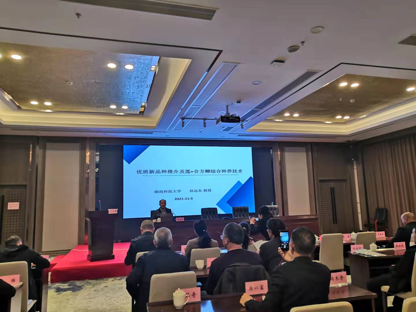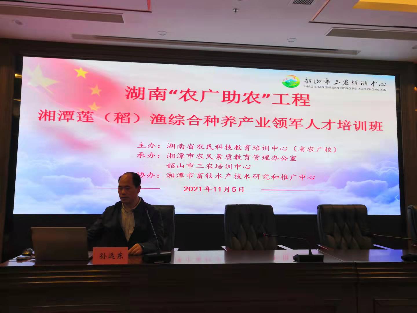 2021年11月5日,足球直播吧 孙远东教授应邀给“湖南‘农广助农’工程湘潭莲(稻)渔综合种养产业领军人才培训班”学员授课。