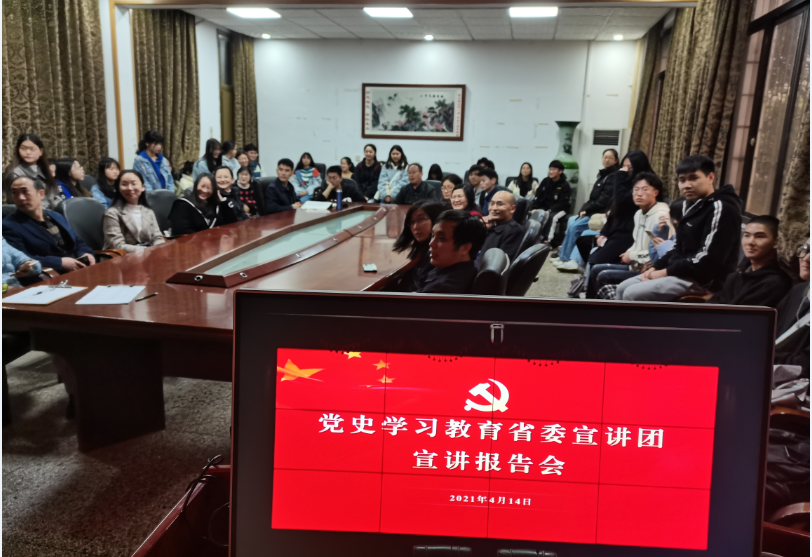 4月14日下午,学校邀请党史学习教育省委宣讲团刘建平教授来校开展专题宣讲,足球直播吧 按照学校安排,组织师生在足球直播吧 105会议室通过网络直播进行收看。