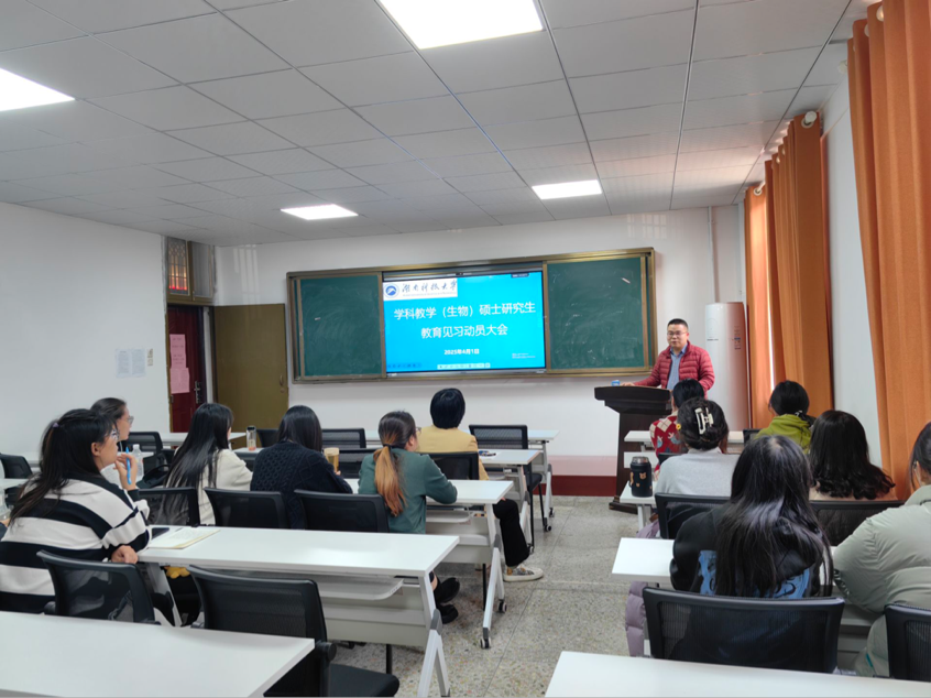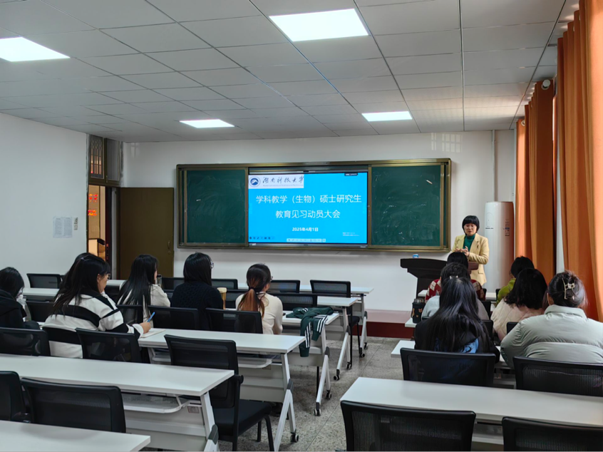 下午15:00,360直播足球直播 召开学科教学(生物)专业硕士研究生教育见习动员大会。学位点负责人彭喜旭教授详细部署见习任务,提出本次见习的目的、安排及其他注意事项。她强调指出同学们要认真学习一线教师的教学模式和提问技巧,并认真总结见习过程中的经验与成果。