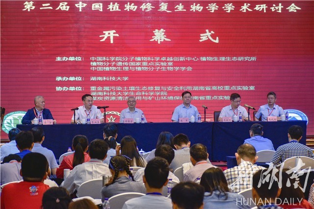 6月1日上午,由足球直播吧 分子植物科学卓越创新中心(植物生理生态研究所)、植物分子遗传国家重点实验室和中国植物生理与植物分子生物学学会主办,湖南科技大学承办的第二届中国植物修复生物学学术研讨会在湖南科技大学召开。北大原校长许智宏、湘潭市副市长傅军、湖南科技大学副校长廖湘岳等出席会议。