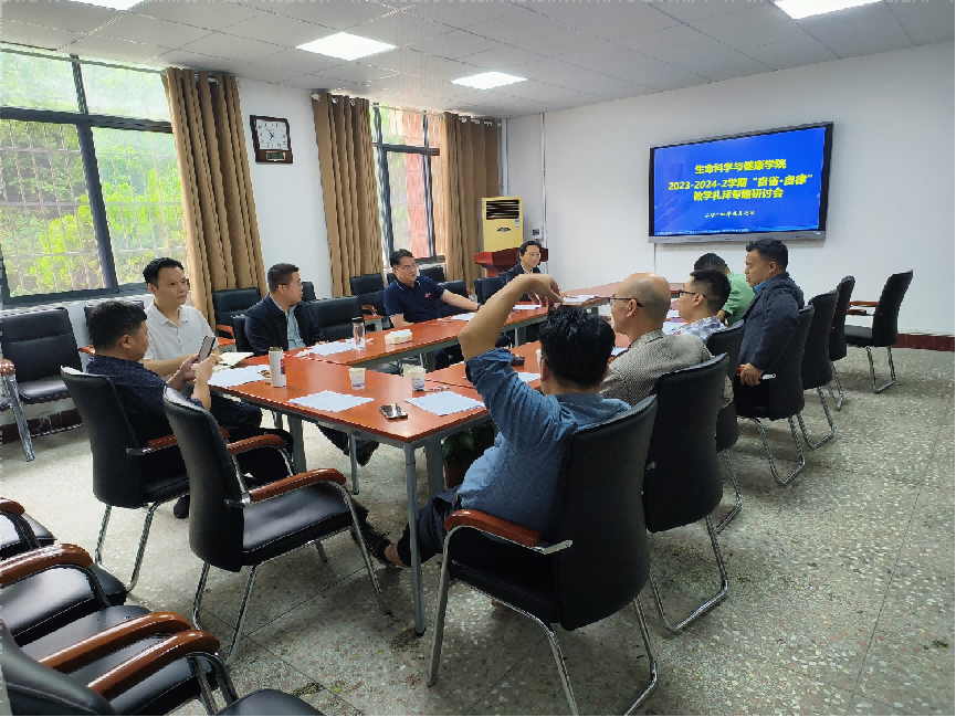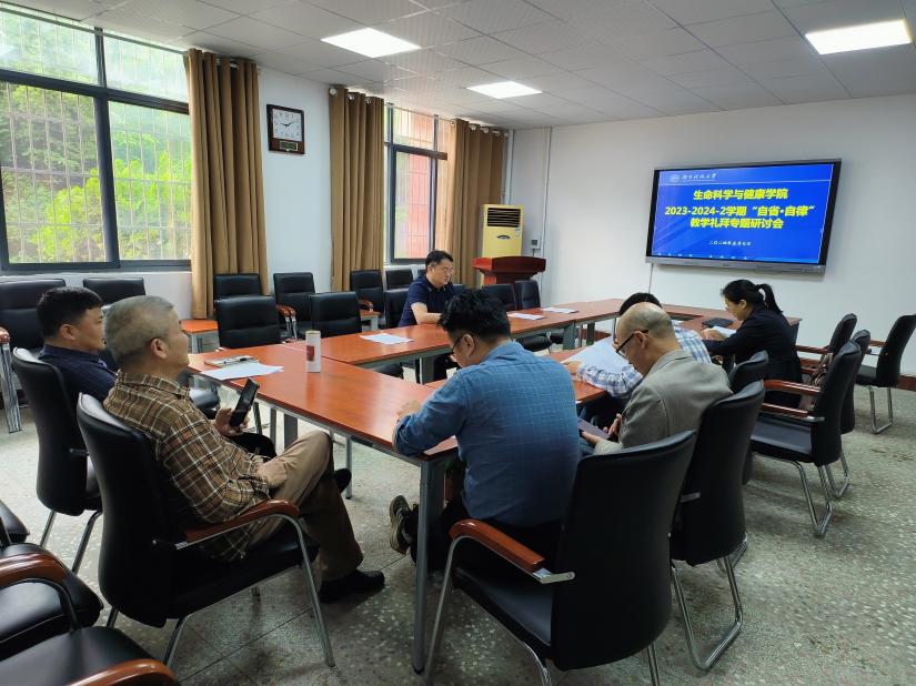 5月7日上午,足球直播吧 2023-2024-2学期“自律·自省”教学礼拜专题研讨会在生物楼110进行,党委书记龙赢、副院长周定港、党委副书记舒艳、各系部主任、实验中心主任及教学指导委员会全体成员与会。