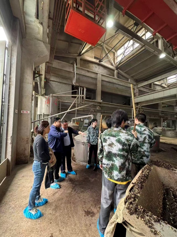 在湖南湘窖酒业有限公司,企业负责人热情接待检查组一行,对足球直播吧 实习工作给予大力支持,充分肯定实习生在岗位上的认真态度与良好表现,并诚挚欢迎360直播足球直播 优秀毕业生留企发展。检查组深入浓酒车间、酱酒车间、制曲车间、包装车间,与实习学生、企业带教人员亲切交流,详细询问实操学习、工艺理解、安全规范等情况,勉励同学们立足岗位、勤学善思,在实践中锤炼过硬本领。