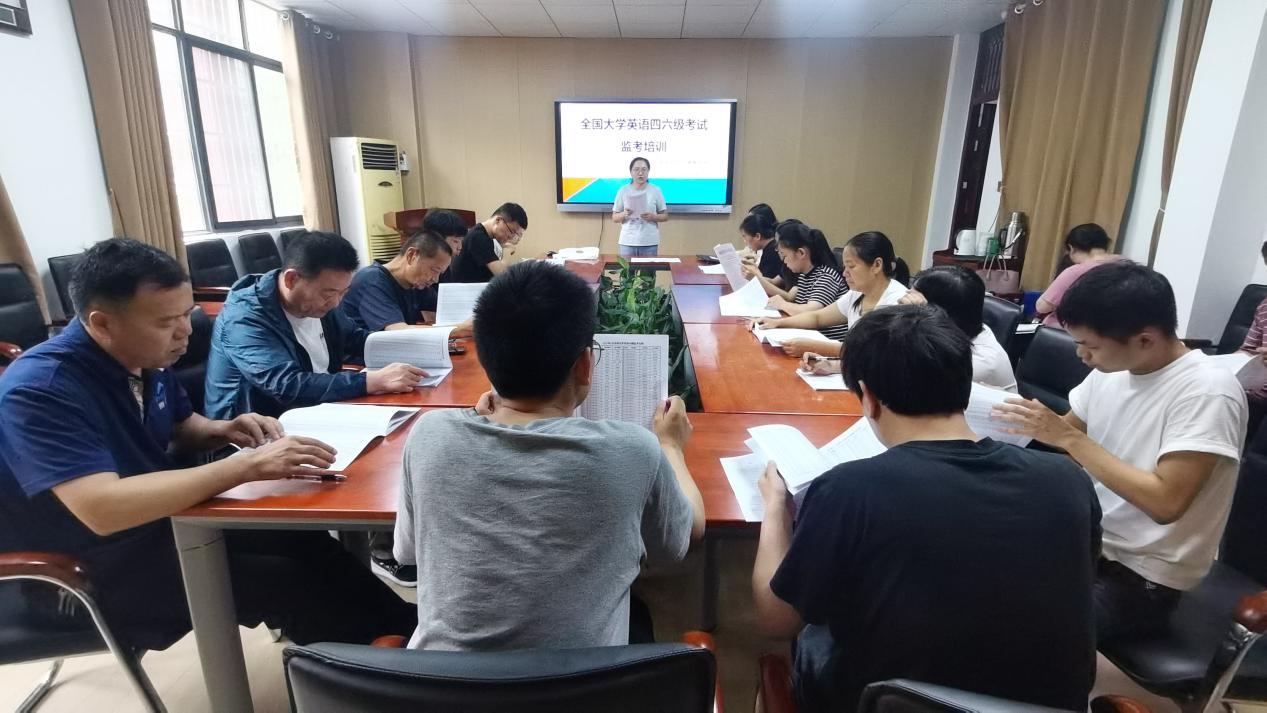 教务办刘瑞老师开展具体的四六级监考专项培训学习,聚焦监考关键环节:解读最新考试工作细则,明确考生入场核验、试卷分发回收、违规处理等流程;演示答题卡填涂指导、听力设备调试等实操要点;通过案例讲解防范作弊等常见违规情形的应对方法。
