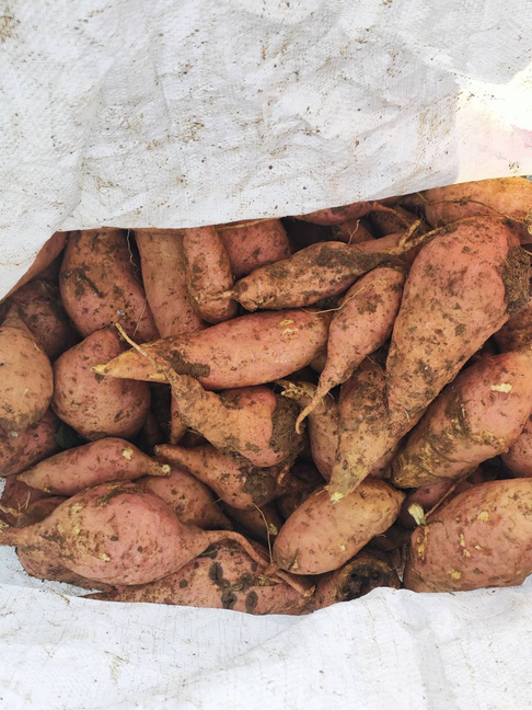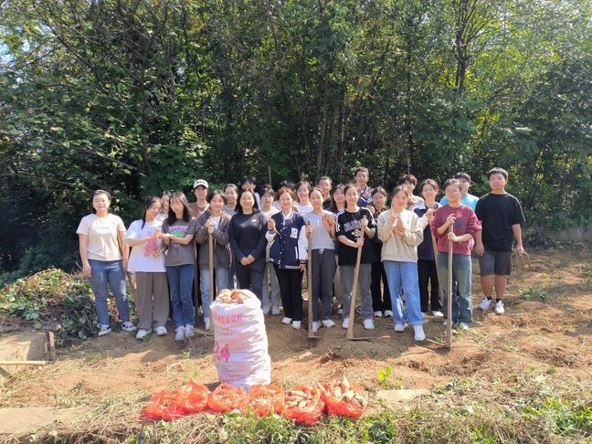 尽管阳光斜照,同学们的热情丝毫不减,他们分工明确,团结协作,运用手中的工具挖出一个又一个饱满的红薯。脸上流露着的不仅仅是劳作的汗水,更是丰收的喜悦与快乐。在同学们的共同努力下,菜地上摆满了一袋袋的大红薯。最后,生科学子们进行合影留恋,将这份收获的成就感记录在照片里。