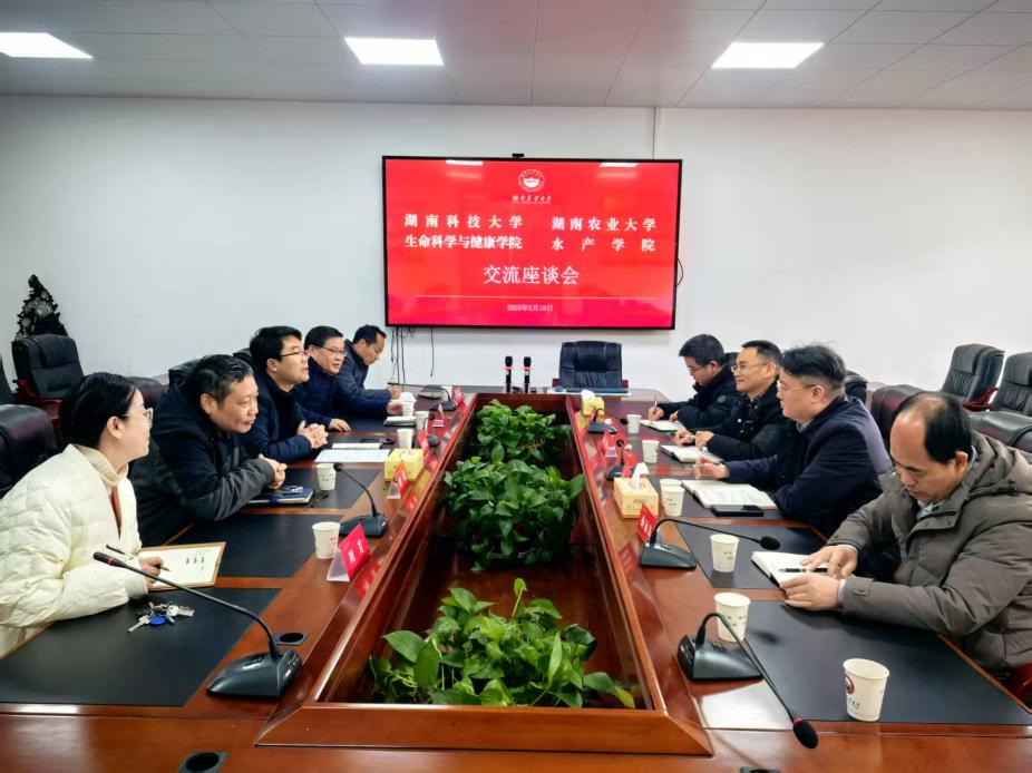 为贯彻落实学校"走出去、跑起来、见成效"精神和推动学科建设,2025年1-2月,足球直播吧 领导班子带头赴湖南师范大学、湖南农业大学、湖南省水产科学研究所、湘潭市农业科学研究所等单位进行考察交流。陈宇顺院长、龙赢书记、周定港副院长和孙远东教授等一同参加。通过实地走访、专题研讨等形式,足球直播吧 与兄弟单位在学科建设、科研合作和人才培养等方面将不断深化合作,共谋发展。尤其将在国家和省部级重点项目联合申报、博士研究生联合培养、科研平台资源共建共享等方面建立长效合作机制。