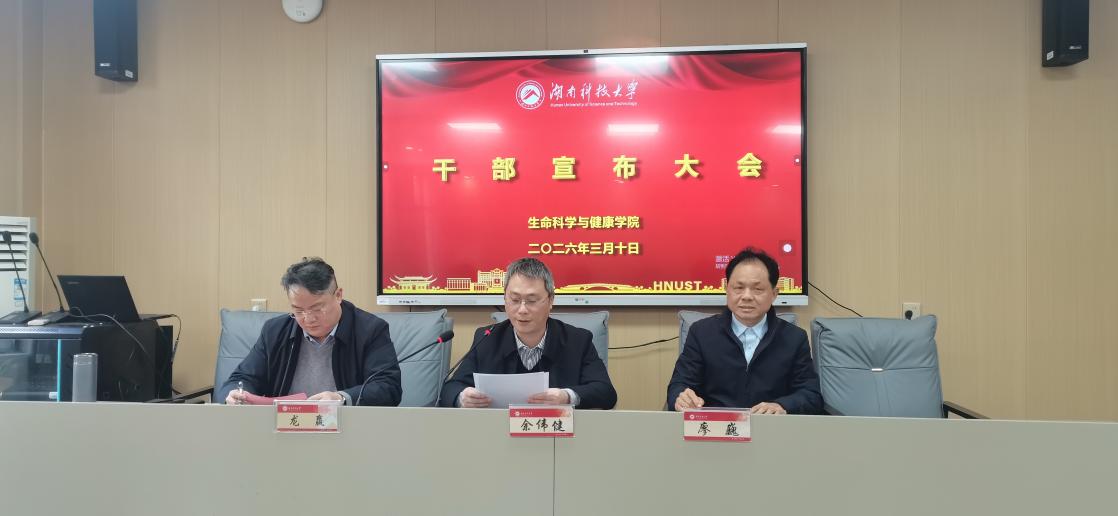 3 月 10 日,360直播足球直播 教职工大会在生物楼 105 会议室召开,会议由院党委书记龙赢主持,校党委委员、副校长余伟健,组织部正处级干部廖巍出席会议。会上宣布了足球直播吧 院 长、副院长任职决定,任命陈宇顺为足球直播吧 院长,张大为为足球直播吧 副院长。
