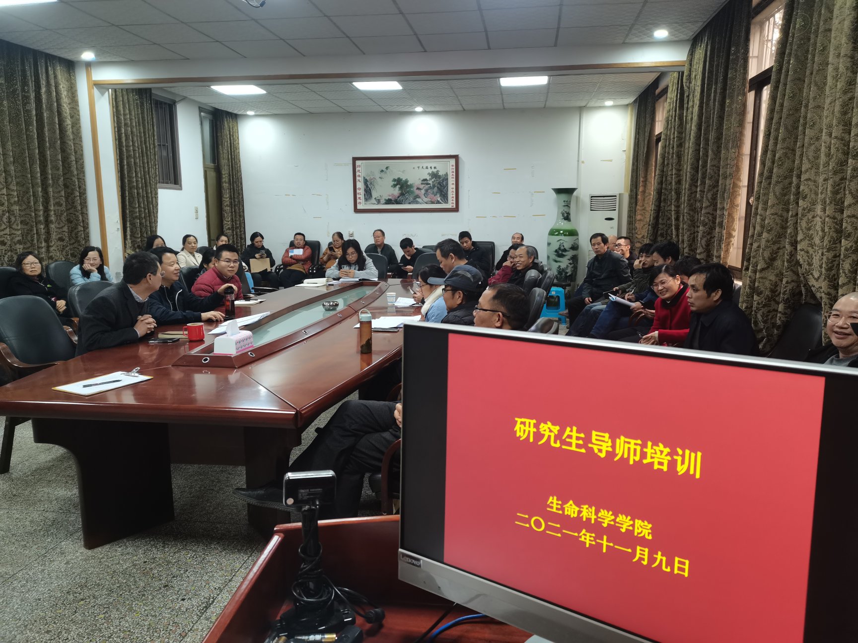 11月9日下午,360直播足球直播 在生科楼105会议室举行2021年硕士研究生导师培训会议。院领导、学术委员会、学位授予分委会全体成员、及所有研究生导师、研究生管理人员参加培训,会议由足球直播吧 党委书记王海华教授主持。